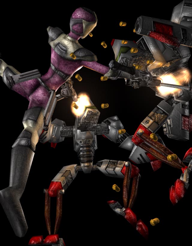 The models below were modeled and rigged by my friend Andrew Karp. For this project I was in charge of cleanup, UV mapping, texture painting, and additional effects.